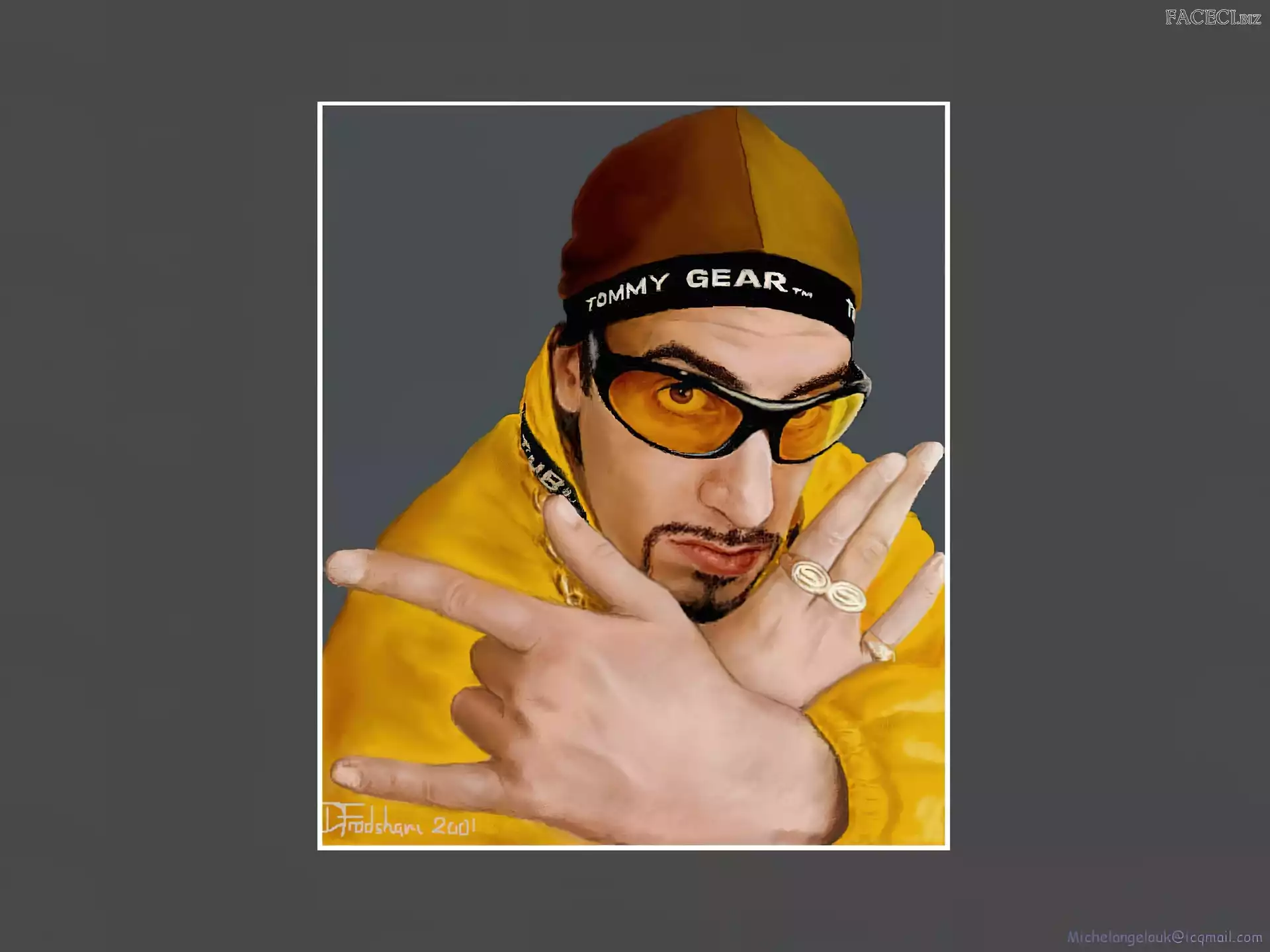Sasha Baron Cohen, zdjęcia Sasha Baron Cohen, gruby łańcuch Sasha Baron Cohen, żółty strój złoty strój, Sasha Baron Cohen, okulary Sasha Baron Cohen, niebieski dres Sasha Baron Cohen, borat Sasha Baron Cohen, ali g